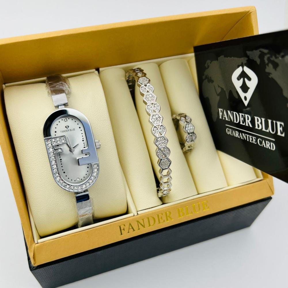 طقم نسائي من ماركة فندربلو مكون من ساعه و اساور زركون ،
