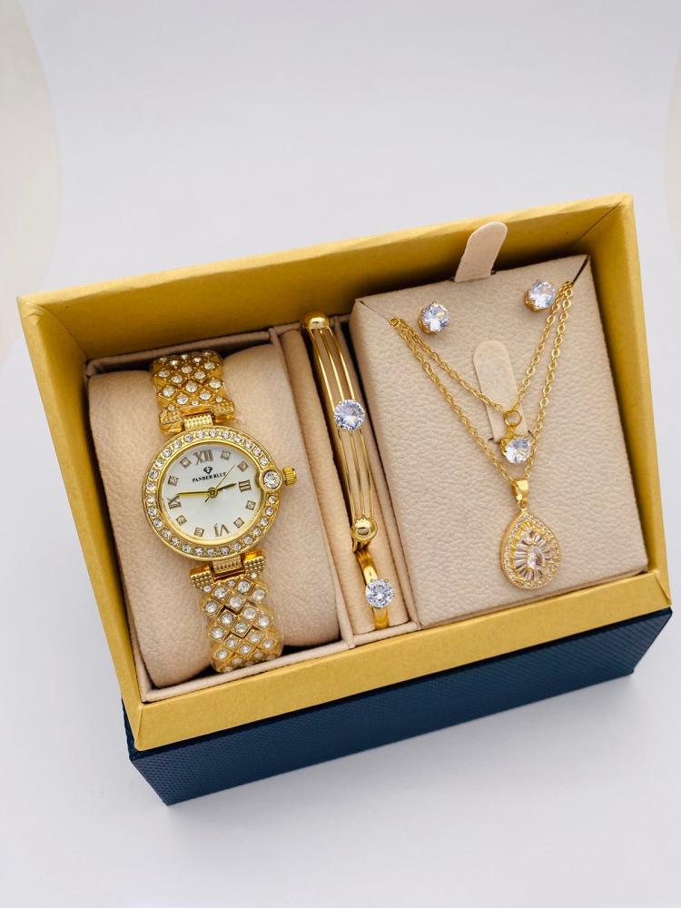 طقم نسائي من ماركة فندربلو مكون من ساعه وسلسله وحلق ،